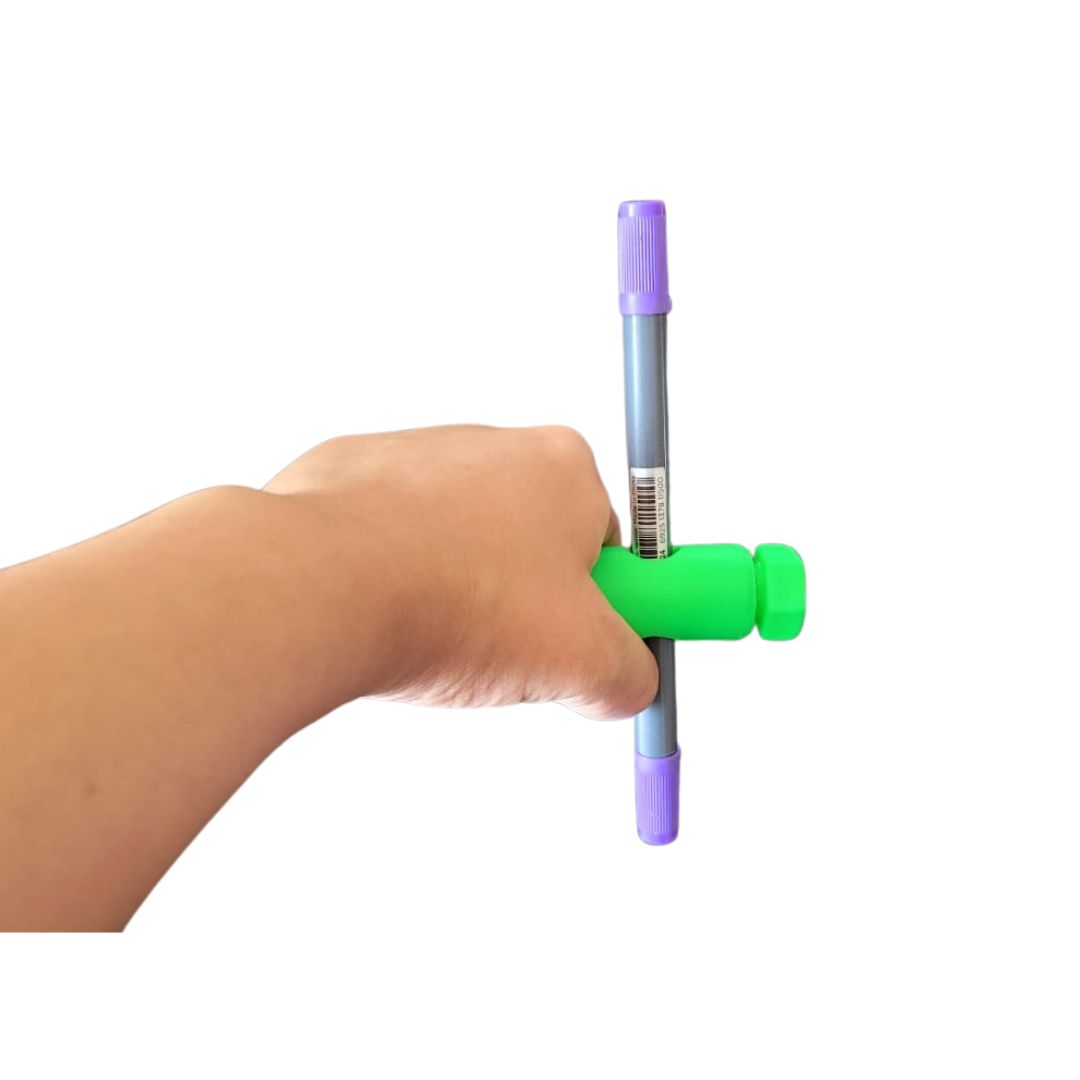 Adaptador vertical redondo para mejorar el agarre y desempeño motor al momento de usar lápiz, pincel, cepillo dental u otro objeto.